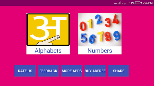 Impara l'alfabeti e i numeri hindi da Impara l'app hindi alfabeti e numeri.Il suono chiaro è previsto per ogni alfabeto e numero per rendere facile l'apprendimento di alfabeti e numeri hindi.