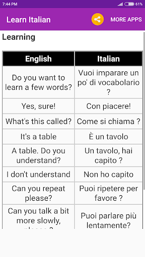 Learn Italian with 5 minutes of practice daily. Edu Technologies is the quick fix that will teach you core Italian words and Italian phrases for conversation, just like a phrasebook. If you want to learn beyond the basics, there are also Italian grammar lessons available. It’s even great for kids!