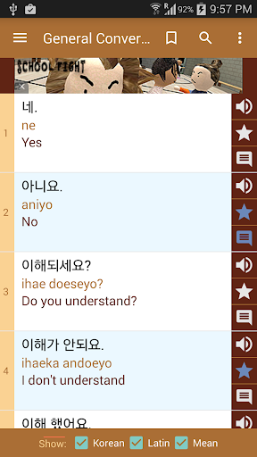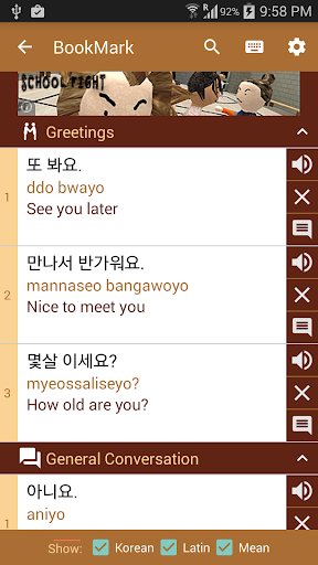 - Search by keywords (korean, mean...)