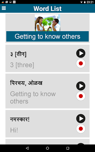 Impara Marathi! - "50 lingue marathi" (www.50languages.com) contiene 100 lezioni che forniscono un vocabolario di base della lingua marathi. Questa app gratuita ha 30 lezioni. Con nessuna conoscenza preliminare, imparerai Marathi e parla fluentemente brevi frasi Marathi nelle situazioni del mondo reale in pochissimo tempo.