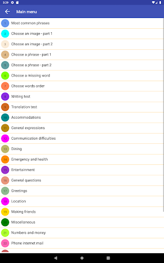 Questa applicazione gratuita ti aiuterà a imparare come leggere, scrivere e pronunciare parole e frasi. È divertente e facile da usare il gioco educativo che include migliaia di parole e frasi che ti forniscono conoscenze nelle situazioni del mondo reale. L'app è classificata in 100 argomenti che coprono la vita quotidiana o le situazioni di viaggio.