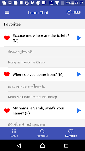 The first version of Learn Thai apps. It provides an easy to use interface with many features that help you learning the language in a fastest way. Learn Thai is recorded using native speakers and we have tried out best to be authentic in the pronunciation whilst ensuring it is easy to understand.