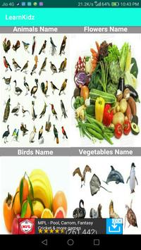 You Will Learn in This App Animals name Birds Name Sea Animals Name Vegetables Name Vehicles Name Fruits Name Flowers Name Shapes Name Colors Name Parts Of Body And Numbers