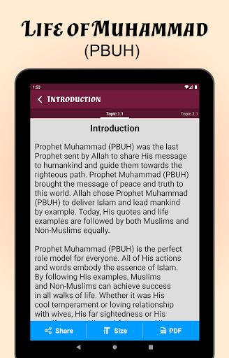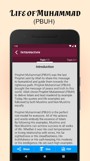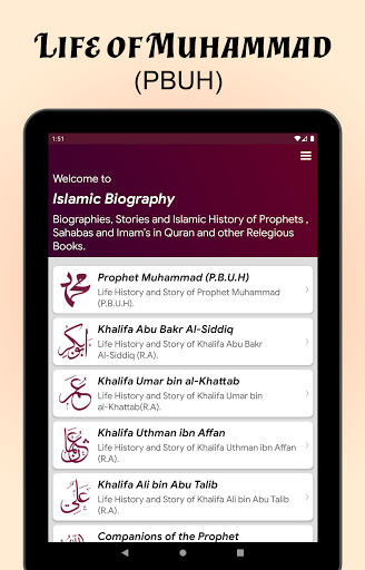 Vita completa del Profeta Muhammad PBUH in inglese Traduzione. L'app Life of Profeta Muhammad (PBUH) contiene la biografia completa del Profeta Muhammad PBUH. Il profeta Muhammad PBUH è l'ultimo profeta di Allah (Rasool Allah), motivo per cui è obbligatorio per ogni musulmano conoscere ogni aspetto della sua vita.