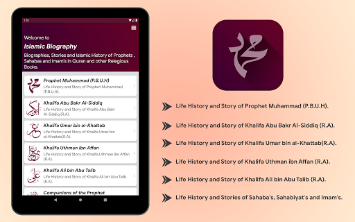 Biografia islamica: la vita del Profeta Muhammad (PBUH) contiene biografie, storie e storia islamica di profeti, Sahabas e Imam in Corano e altri libri relitti.