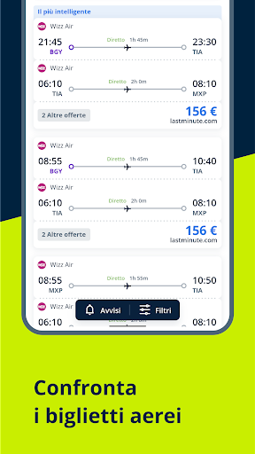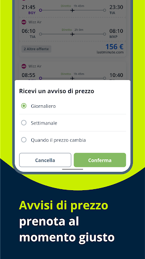 • Crea notifiche di prezzo per le tue destinazioni preferite per ricevere un avviso quando il prezzo del biglietto diminuisce.