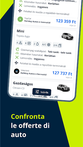 • Nelle offerte di noleggio auto, Liligo mostra un prezzo totale che include le tasse aeroportuali e le tasse per i giovani autisti, se applicabili. La politica del carburante, il chilometraggio e le condizioni di cancellazione sono visibili su ogni offerta.