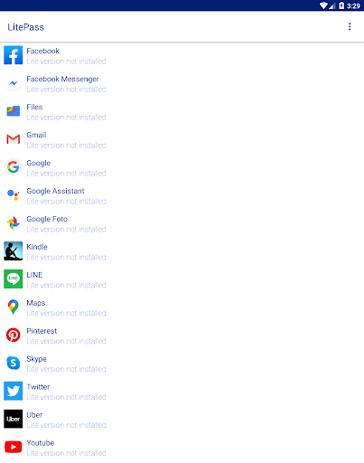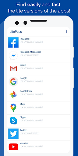 Do you want to know if there is a lite version of an app? LitePass allows you to quickly and easily find and obtain lite versions of apps through a constantly updated list, just locate the app in the list and tap!
