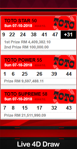 > Sport Toto 4D, Toto 4D Jackpot, Toto 5D & TOTO 6D;