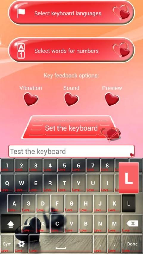 2. Return to the application, then select 'Set the Key board to Default' button and select “Love Hearts Keyboard Changer”