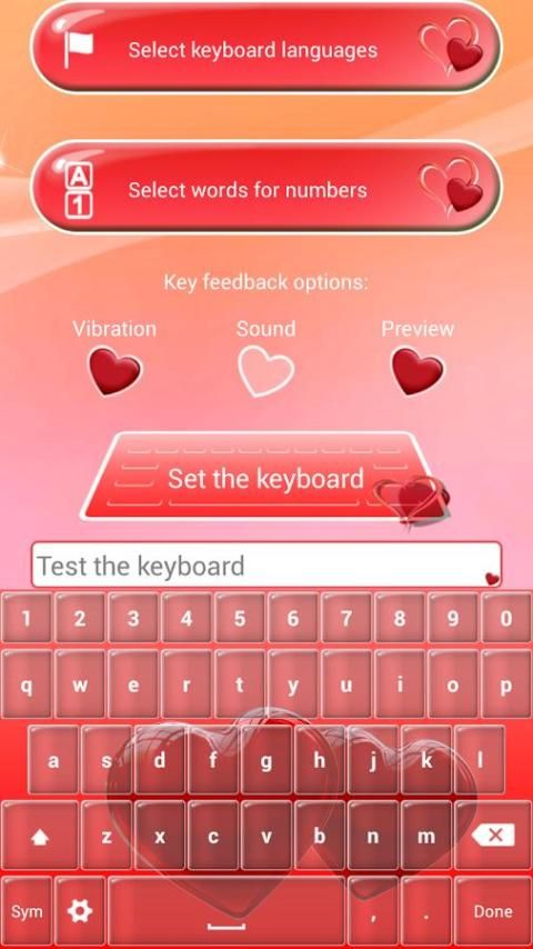 A brand new collection of stunningly beautiful Valentine images and red heart backgrounds has been selected to create the best love themes for key board imaginable. Join the Valentine s day craze with “heart keyboard” and say to yourself, at last, I love you keyboard themes. One of the best free apps for Android lets you pick the French, German, Italian, Spanish or English keyboard pro for free, create shortcuts, pick the keyboard sounds and enjoy in the exquisite red color of love keyboard. Feel the power of love with “SMS themes” inspired by the cute Valentine hearts and love backgrounds one of the best keyboard apps has to offer. Have fun with keyboard color changer and pick red, rose, or pink color of your keyboard pro. No other SMS free themes can even come close to the outstanding Valentine themes of these romantic love apps. You get to pick the sweetest keyboard picture and to make SMS texting more romantic than ever before with love themes for Android free of charge. Valentine love is in the air! Every time you send a text message, heart themes of sparkle love keyboard will truly mesmerize you. Do not miss this opportunity to get Valentine heart backgrounds that can suit everybody. All the hopeless romantics will enjoy SMS pro themes free of charge! Get this free download and feast your eyes on the most exquisite love background themes free for Android. Happy Valentine's day!
