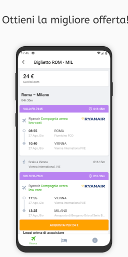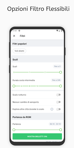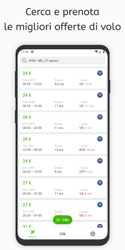 Opzioni Filtro Flessibili: Cerca i biglietti aerei a basso costo come vuoi e quando vuoi. Restringi le ricerche del tuo volo filtrando per il numero di scali, il prezzo totale, la durata del volo, la durata dello scalo e molto altro ancora. l’app Biglietti aerei e voli low cost fornisce persino delle raccomandazioni sui voli più economici basate sulle tue preferenze! Prenotare il tuo volo è diventato un gioco da ragazzi.