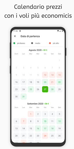 • Calendario prezzi con i voli più economici: Il prezzo dei biglietti aerei può variare in base al giorno della settimana. Prenota i tuoi voli con la consapevolezza di ottenere sempre l’offerta migliore. Prenotare il tuo biglietto aereo è diventato ancora più facile.