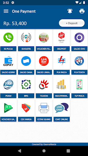 One Payment adalah aplikasi pembelian/pembayaran online, pembelian/pembayaran yang dapat dilakukan oleh aplikasi ini diantaranya : 1. Pulsa 2. PLN 3. ADIRA 4. TELKOM 5. PDAM dan masih banyak yang lainnya