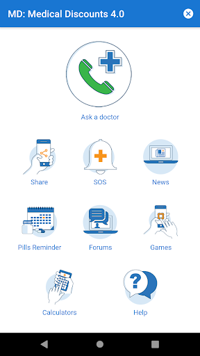 MD: gli sconti medici sono un'applicazione medica gratuita che fornisce un altro parere medico - i medici esperti in varie specialità ti offrono consulenza, sia che siano semplici diagnosi o complesse dove l'inchiesta è necessaria analisi di tutte le scoperte.