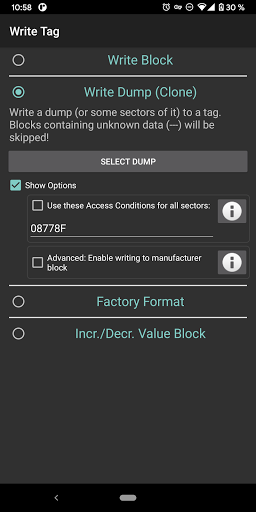 • decodifica & amp;ENCODE MIfare Classic Conditions