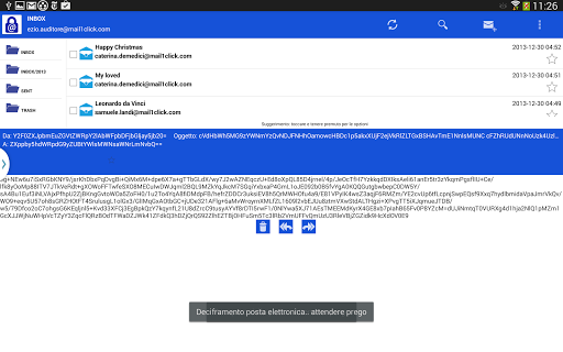 Anche i files allegati ai messaggi sono completamente cifrati ed i messaggi memorizzato nel disco fisso sono cifrati tramite AES 256 bit.