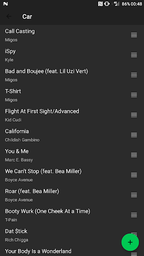 Trascina facilmente le tracce per riordinare e scorrerevia per eliminare. Purtroppo l'app Spotify di base per Android non consente la cancellazione rapida o il riordino di una pista di playlist, quindi l'ho portato su me stesso per implementarlo qui in Gelar.