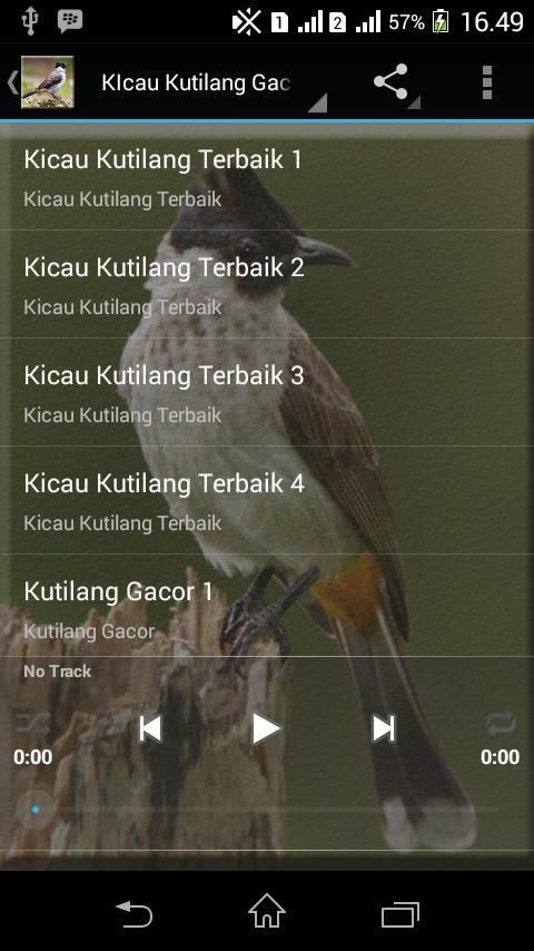 Master Bird Kutilang gacor: finches chirping contains a collection of the best champions. For the lovers of finches may require application finches masteran this one, the article of this app contains finches chirping of the best and most complete finches can train your pet to be able to sing with sonorous. This application can be run without the quota that is not wasteful paketan internet, this app can be run offline.