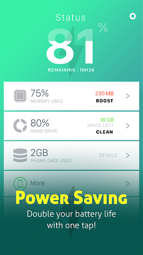 Basta un tocco per risparmiare energia, Trova e risolvi istantaneamente i problemi di consumo della batteria, pulisci efficacemente l'applicazione che consuma energia per aiutarti a ottimizzare la salute della batteria.