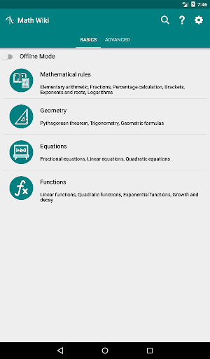 Math Wiki fornisce numerosi esercizi e articoli nel campo della matematica, che sono utile per comprendere meglio i fondamenti della matematica. L'applicazione è utile anche in fase di preparazione per gli esami delle scuole medie, scuole superiori e di matematica all'università