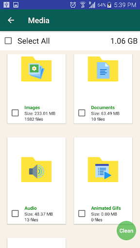 La rimozione o la pulizia dei file condivisi, uno per uno, può essere faticoso e richiede tempo. Con WhatsApp Media Cleaner tutto ciò che dovete fare è semplicemente toccare il pulsante pulita, tutti i file selezionati verranno eliminati dal vostro memoria interna!