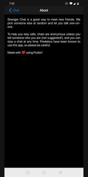 Per aiutarti a rimanere al sicuro, le chat sono anonime a meno che tu non dici a qualcuno che sei (non suggerito!), E puoi fermare una chat in qualsiasi momento.I predatori sono stati conosciuti per utilizzare questa app, quindi si prega di fare attenzione.Consigliato da scaricare solo se hai 18 anni o più.