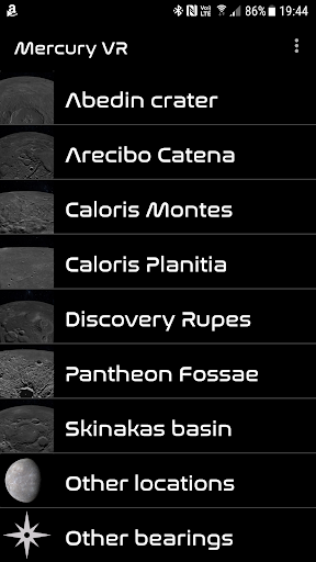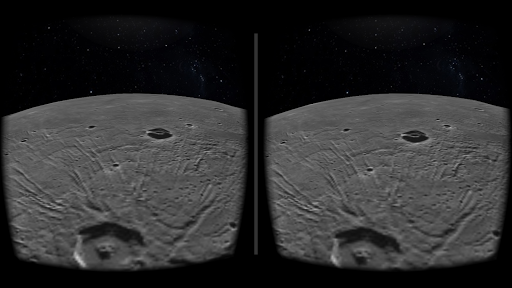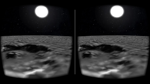 This Google Cardboard app allows you to travel to the planet Mercury and explore it's surface in VR. Select a landing site and then once you reach the surface you can explore by tilting you head left and right to change you direction of flight. Looking up and down will change your altitude and in the settings you can enable a head up display to help you navigate further.