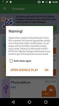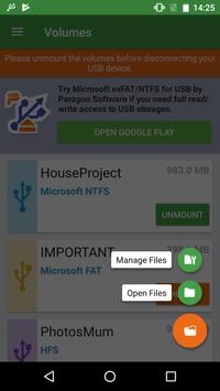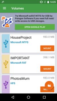 Now it works in a Read-only mode to guarantee the safety of on-disk data. If you need full file manager functionality – copy / move / delete /rename – to work with files from USB storage, check out Microsoft exFAT/NTFS for USB by Paragon Software app.