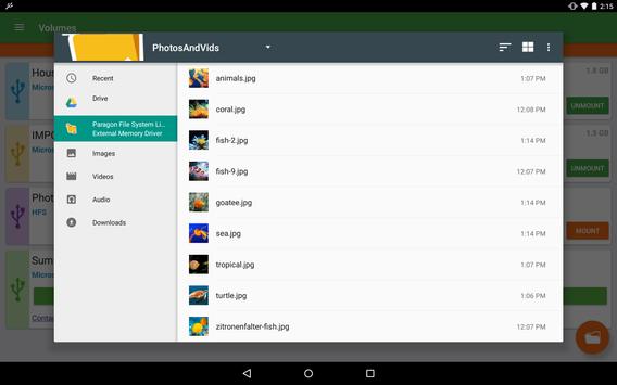 4. To choose your USB volume, tap on the hamburger menu and choose Paragon File System Link.