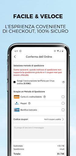 Su questa fashion shopping APP ci sono diversi metodi di pagamento, per esempio, paypal, carta di credito/debito, western union e bonifico bancario ecc. Si prega di scaricare questa applicazione e godere del 10% di sconto per il tuo primo acquisto direttamente su MILANOO APP!