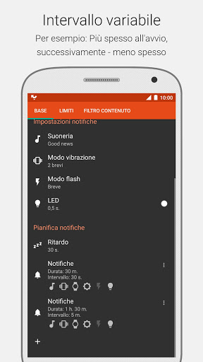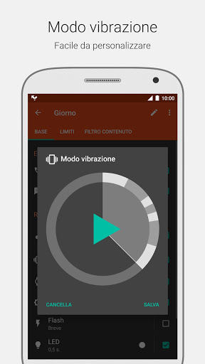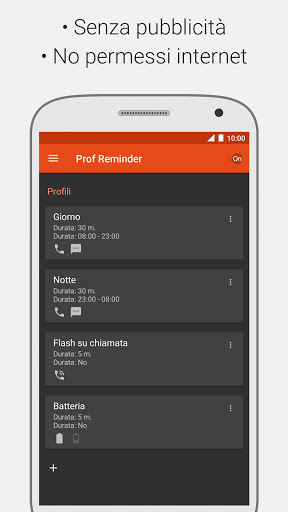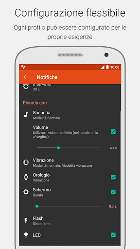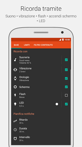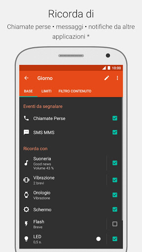 ★ Notifica utilizzando: suoneria, vibrazione, accensione schermo, flash fotocamera (non tutti i dispositivi sono supportati), indicatore LED.