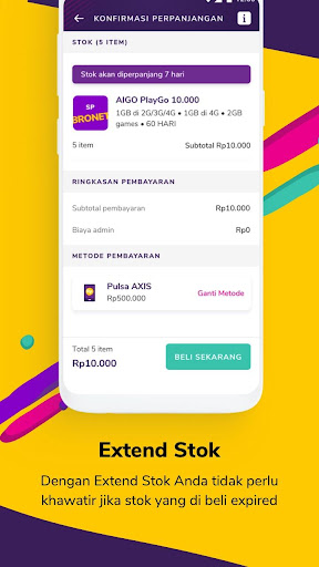 3. Controllare SP & AIGO: controlla il contenuto del pacchetto da Msisdn e controlla il contenuto del pacchetto e del periodo di validità di AIGO 4. ACQUISTA STOCK: sempre disponibile, può acquistare azioni in qualsiasi momento in modo che la rende più facile per le impostazioni delle scorte in base alle esigenze 5. Spara Sp & Aigo: Shoot sp & Aigo gratuito in qualsiasi momento per le scorte settimanali / mensili senza paura di scappare.