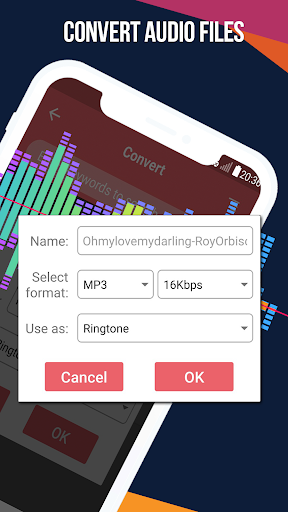 - Set ringtone: set audio file to be cut / split / change format into ringtone, alarm tone of the phone.