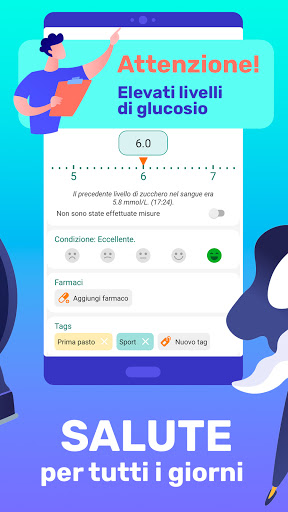 😃 Questo è un sacco di possibilità nella tasca: test glucosio diabetes tracker può impostare i tag prima di entrare in ogni lettura del registro di zucchero nel sangue - prima di cena, dopo un'attività sportiva, alcol, guida ecc. Quindi, in seguito, sarà molto facile ed efficace analizzare il registro della glicemia e scoprire quali fattori e quali fattori rendono i livelli di zucchero alti o bassi.