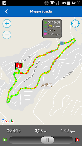o Mostra i dati di velocità e frequenza cardiaca di ogni punto registrato sulla mappa del percorso