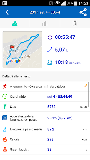 o Visualizzazione di dati cronologici di allenamento completi e dettagliati, tabelle analitiche e percorsi su Google Map