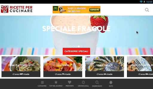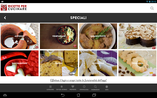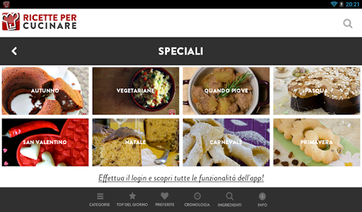 L’app che vi presentiamo vuole essere intuitiva sempre viva e aggiornata al momento, tramite la connessione live con il sito ricettepercucinare.com. Ogni giorno ti proponiamo nuove ricette in base alla stagione ed al momento, anche grazie alla vostra inte