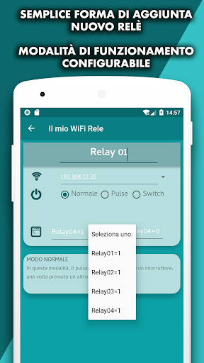 È possibile modificare il pulsante che governa il relè in modo che invii PULSI in un intervallo che è possibile prefisso. (solo se viene utilizzato il firmware incluso nell'app ...)
