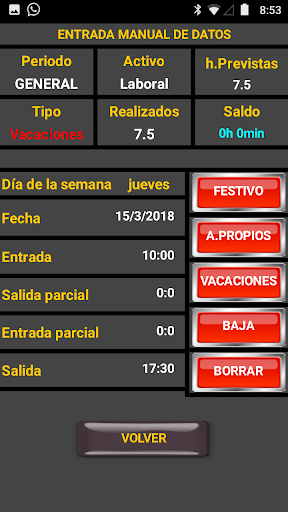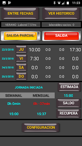 L'applicazione raccoglie i nostri ingressi e uscite con premendo un pulsante mentre si premette in pratica al lavoro.