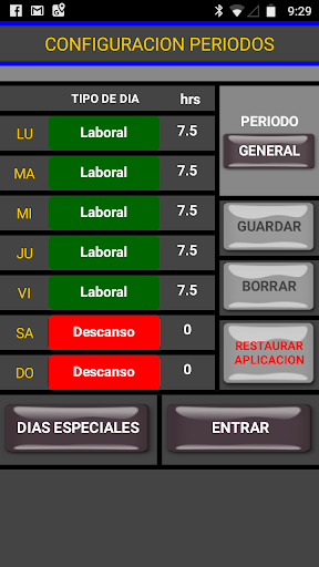 • Orari: Possiamo contrassegnare periodi con diversi giorni lavorativi settimanalmente e il numero di ore diverse da incontri al giorno (ora legale).