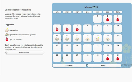 La calcolatrice calcola il ciclo mestruale mensile.