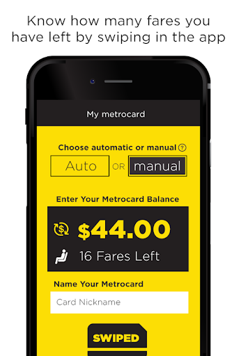 The NYC MetroCard Balance Tracker app will keep track of your fares by allowing you to "swiped" on you card in the app everytime you ride MTA. The app will then reduce your metrocard balance and update the amount of fares you have left.