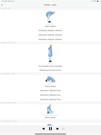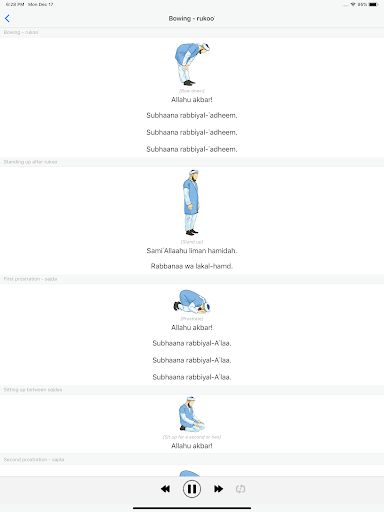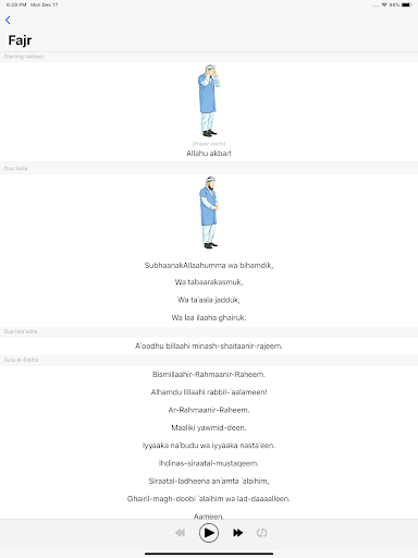 Questa app è un giocatore audio per ascoltare la pronuncia corretta delle preghiere in arabo.Ti aiuterà ad imparare le invocazioni DUA e le parti del Corano che vengono lette all'interno della preghiera.Avrai anche i testi nella traslitterazione inglese e alcune illustrazioni per aiutarti a navigare attraverso il processo.Tutto il contenuto è conforme alle regole della Hanafi School of Law.