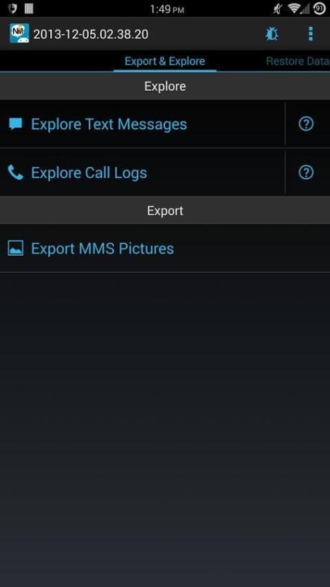 * Explore text messages in nandroid backup without having to restore anything. (Pro)