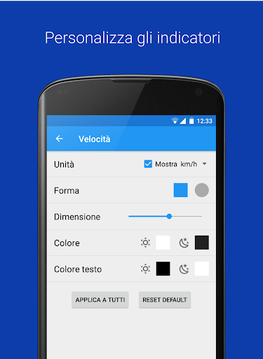 Gli indicatori sono completamente personalizzabili: puoi modificarne colore, dimensioni, forma e trasparenza. Puoi scegliere le unità di misura che preferisci e decidere se visualizzarle o meno.
