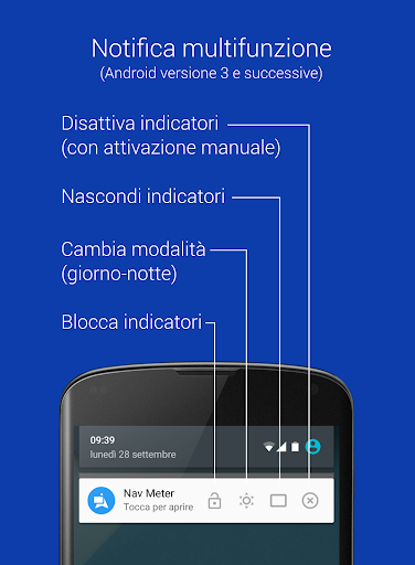 NavMeter ti permette di visualizzare velocità, altitudine, bussola o coordinate in tutti quei navigatori che non danno queste informazioni.