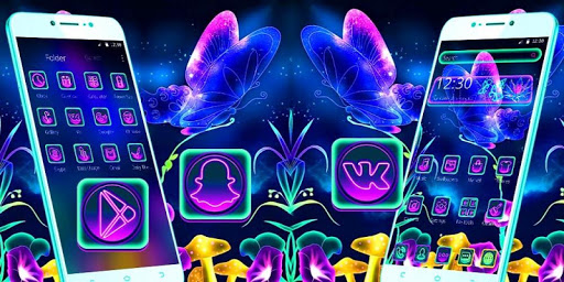 with colorful high-definition wallpapers and glowing icon packs. If you like butterfly, don’t miss the lovely Neon Blue Butterfly theme. Download the new theme and transform your phone with colorful screens and glowing icons.