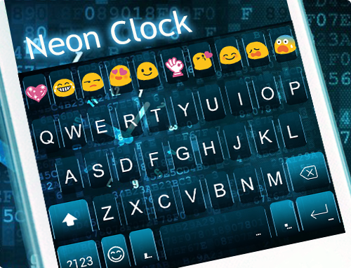 Neon Clock Skin for a free popular Emoji Art,Gif,Symbol,Stickers,and Smiley Keyboard.