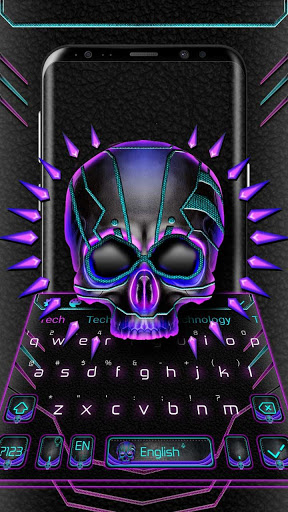 Il tema per tastiere Teschio tecnologia neon viola darà un aspetto splendido al tuo dispositivo! Ti porterà in un fantastico mondo fatto di temi. 😍